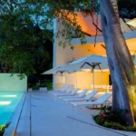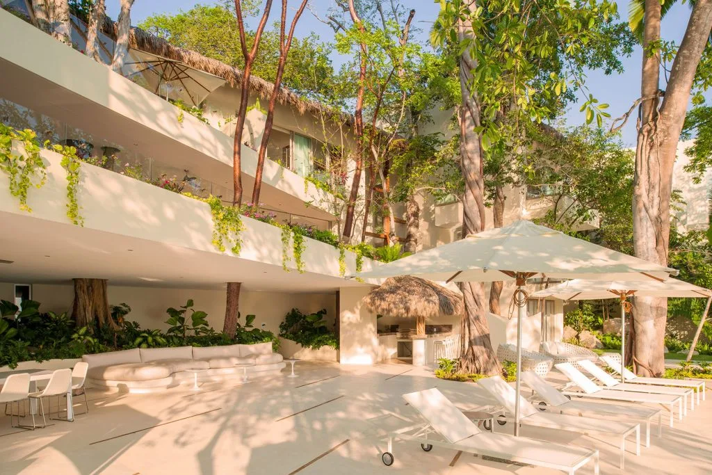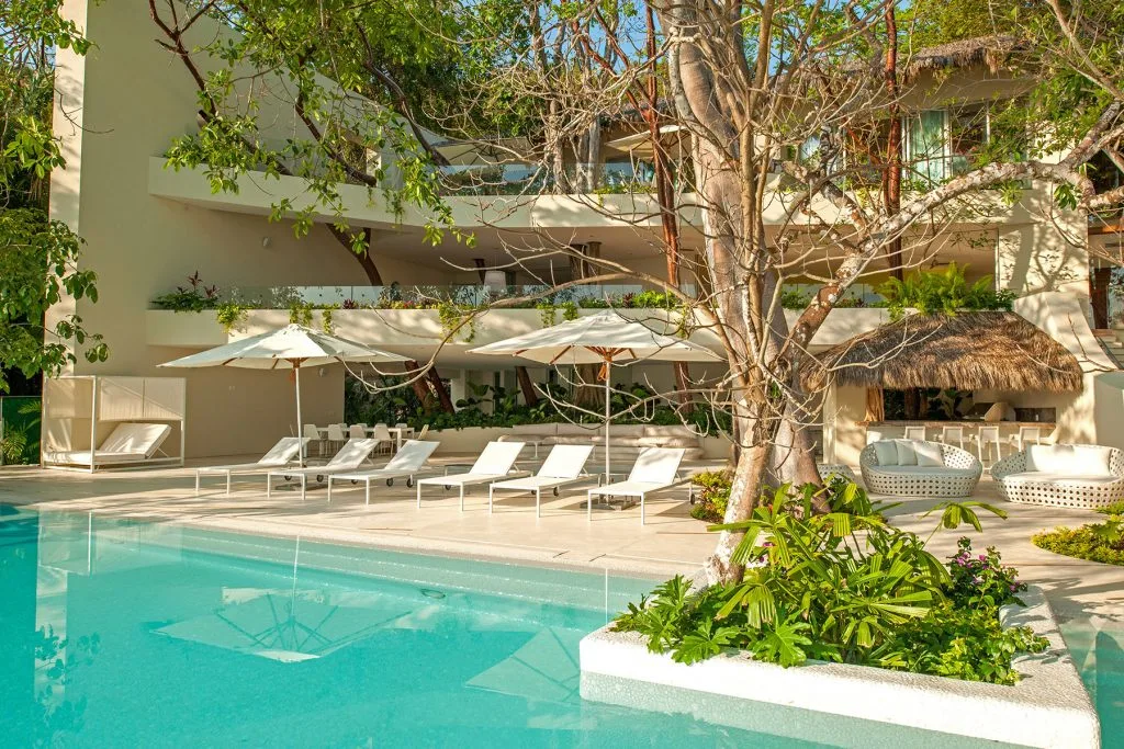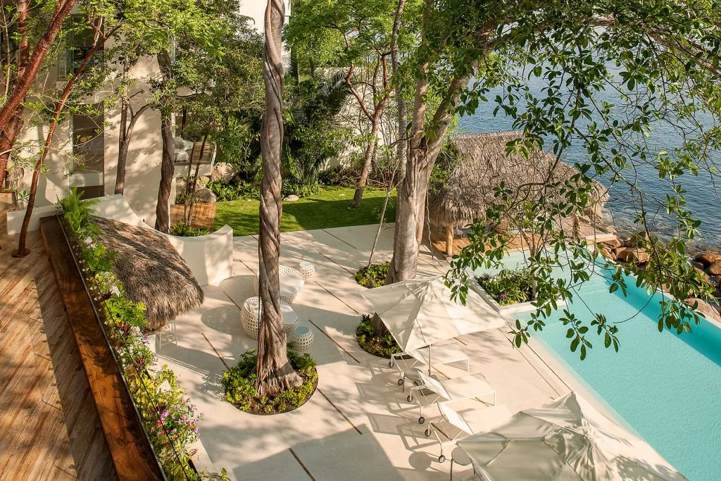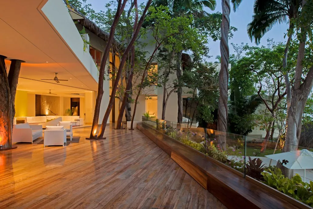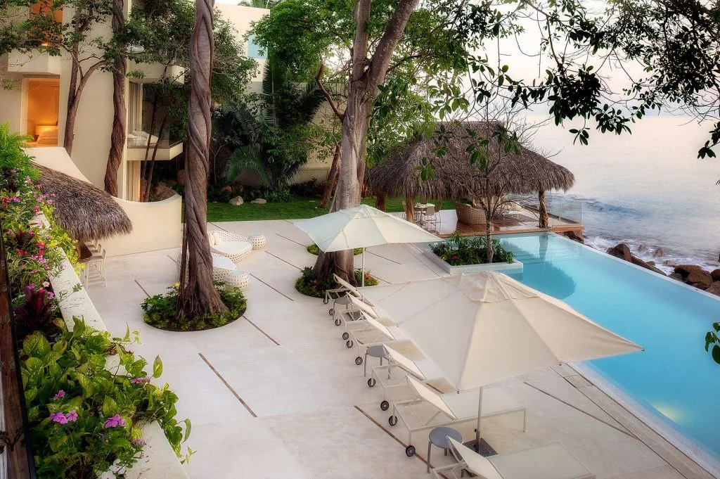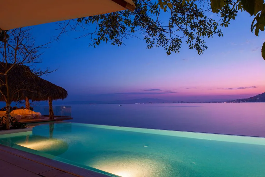 This amazing 13,000-square-foot oceanfront home has five bedrooms, sleek contemporary style and indoor living spaces that seamlessly transition to outdoor terraces. Its location on the El Paredon Resort on Banderas Bay means guests have access to the resort’s amenities, plus perks like daily maid and cook service.
