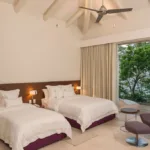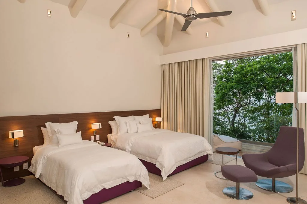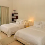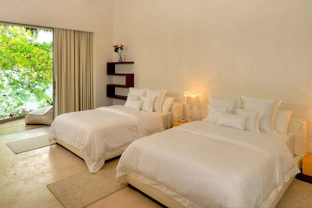 Bedroom 2 – Two queen beds, En-suite bathroom, In room air, Ceiling fans, Television, Blueray DVD player, Telephone, Interphone, Walk-in closet, Balcony, Ocean and pool view