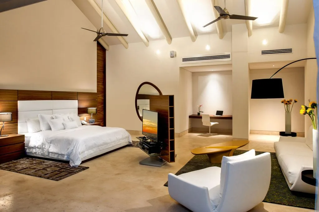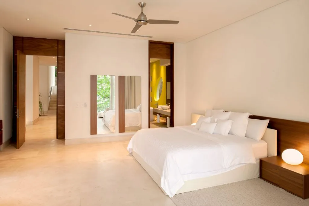 Bedroom 4 – King size bed, En-suite bathroom with bathtub, In room air, Ceiling fan, Television, Sound system, Telephone, Interphone, Walk-in closet, Sitting area with coffee table, Balcony, Ocean and swimming pool view